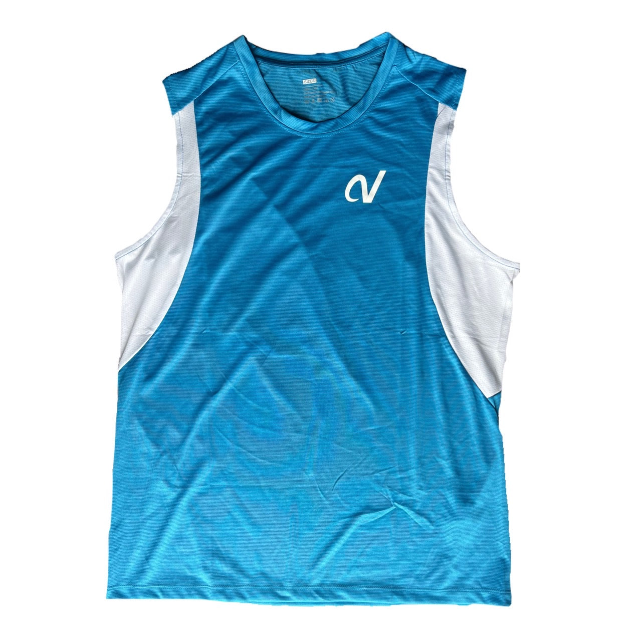 爽やかなシャープブルーとシャープなホワイトラインが特徴のタンクトップ。